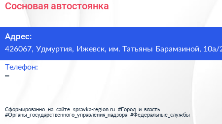 Сосновая, автостоянка по адресу 426067, Удмуртия, Ижевск, им. Татьяны Барамзиной, 10а/2 в дальнейшем Организация, размещена в следующих категориях: