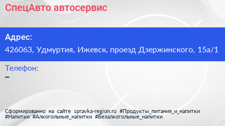 СпецАвто, автосервис по адресу 426063, Удмуртия, Ижевск, проезд Дзержинского, 15а/1 в дальнейшем Организация, размещена в следующих категориях: