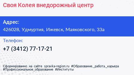 Своя Колея, внедорожный центр по адресу 426028, Удмуртия, Ижевск, Маяковского, 33а в дальнейшем Организация, размещена в следующих категориях: