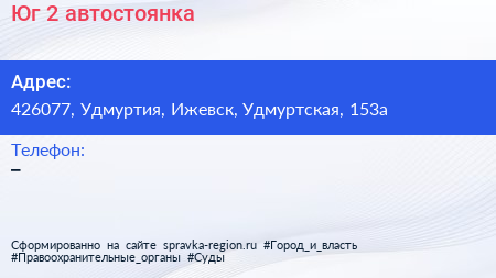 Юг-2, автостоянка по адресу 426077, Удмуртия, Ижевск, Удмуртская, 153а в дальнейшем Организация, размещена в следующих категориях: