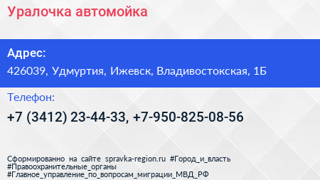 Уралочка, автомойка по адресу 426039, Удмуртия, Ижевск, Владивостокская, 1Б в дальнейшем Организация, размещена в следующих категориях:
