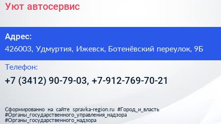 Уют, автосервис по адресу 426003, Удмуртия, Ижевск, Ботенёвский переулок, 9Б в дальнейшем Организация, размещена в следующих категориях: