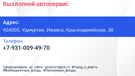 Выхлопной, автосервис по адресу 426003, Удмуртия, Ижевск, Красноармейская, 38 в дальнейшем Организация, размещена в следующих категориях: