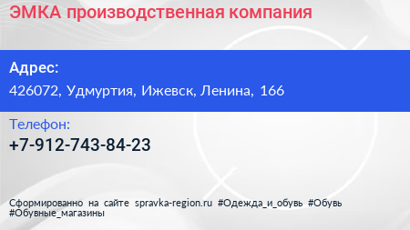 ЭМКА, производственная компания по адресу 426072, Удмуртия, Ижевск, Ленина, 166 в дальнейшем Организация, размещена в следующих категориях: