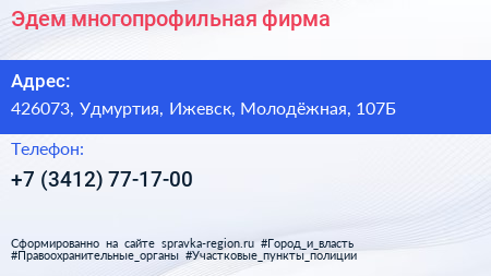 Эдем, многопрофильная фирма по адресу 426073, Удмуртия, Ижевск, Молодёжная, 107Б в дальнейшем Организация, размещена в следующих категориях: