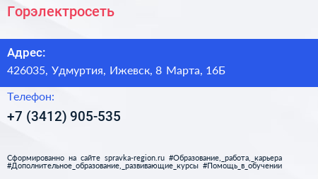 Горэлектросеть по адресу 426035, Удмуртия, Ижевск, 8 Марта, 16Б в дальнейшем Организация, размещена в следующих категориях: