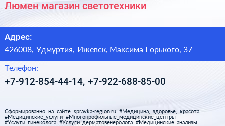 Люмен, магазин светотехники по адресу 426008, Удмуртия, Ижевск, Максима Горького, 37 в дальнейшем Организация, размещена в следующих категориях: