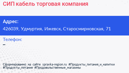 СИП кабель, торговая компания по адресу 426039, Удмуртия, Ижевск, Старосмирновская, 71 в дальнейшем Организация, размещена в следующих категориях: