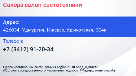 Сакора, салон светотехники по адресу 426034, Удмуртия, Ижевск, Удмуртская, 304к в дальнейшем Организация, размещена в следующих категориях: