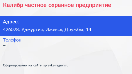 Калибр, частное охранное предприятие по адресу 426028, Удмуртия, Ижевск, Дружбы, 14 в дальнейшем Организация, размещена в следующих категориях: