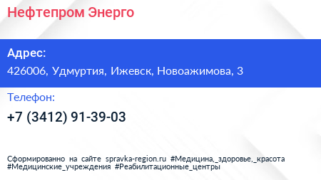 Нефтепром-Энерго по адресу 426006, Удмуртия, Ижевск, Новоажимова, 3 в дальнейшем Организация, размещена в следующих категориях: