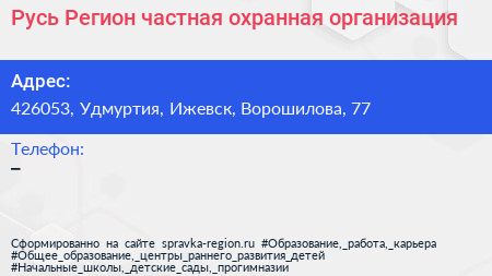 Русь-Регион, частная охранная организация по адресу 426053, Удмуртия, Ижевск, Ворошилова, 77 в дальнейшем Организация, размещена в следующих категориях: