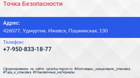Точка Безопасности по адресу 426077, Удмуртия, Ижевск, Пушкинская, 130 в дальнейшем Организация, размещена в следующих категориях: