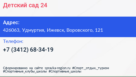 Детский сад №24 по адресу 426063, Удмуртия, Ижевск, Воровского, 121 в дальнейшем Организация, размещена в следующих категориях: