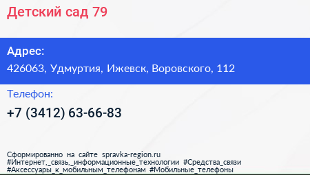 Детский сад №79 по адресу 426063, Удмуртия, Ижевск, Воровского, 112 в дальнейшем Организация, размещена в следующих категориях: