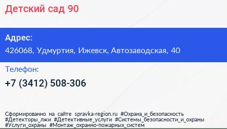 Детский сад №90 по адресу 426068, Удмуртия, Ижевск, Автозаводская, 40 в дальнейшем Организация, размещена в следующих категориях: