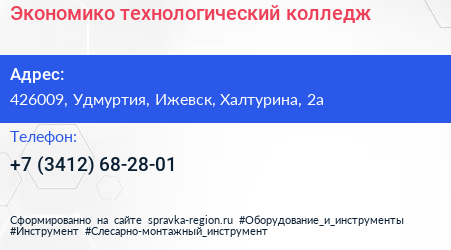 Экономико-технологический колледж по адресу 426009, Удмуртия, Ижевск, Халтурина, 2а в дальнейшем Организация, размещена в следующих категориях: