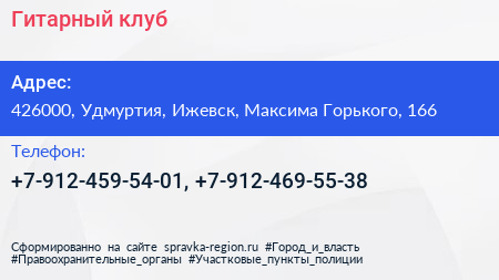 Гитарный клуб по адресу 426000, Удмуртия, Ижевск, Максима Горького, 166 в дальнейшем Организация, размещена в следующих категориях: