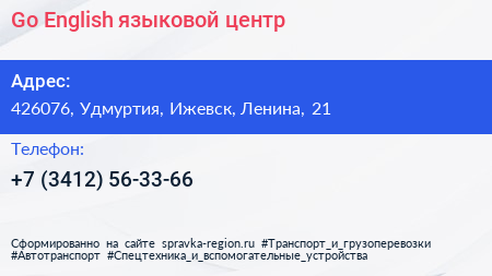 Go! English, языковой центр по адресу 426076, Удмуртия, Ижевск, Ленина, 21 в дальнейшем Организация, размещена в следующих категориях: