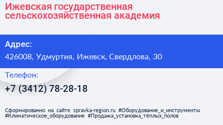 Ижевская государственная сельскохозяйственная академия по адресу 426008, Удмуртия, Ижевск, Свердлова, 30 в дальнейшем Организация, размещена в следующих категориях: