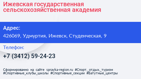 Ижевская государственная сельскохозяйственная академия по адресу 426069, Удмуртия, Ижевск, Студенческая, 9 в дальнейшем Организация, размещена в следующих категориях: