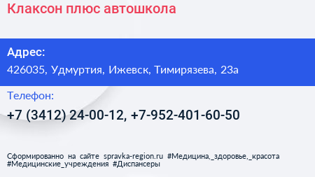 Клаксон плюс, автошкола по адресу 426035, Удмуртия, Ижевск, Тимирязева, 23а в дальнейшем Организация, размещена в следующих категориях: