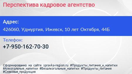 Перспектива, кадровое агентство по адресу 426060, Удмуртия, Ижевск, 10 лет Октября, 44Б в дальнейшем Организация, размещена в следующих категориях: