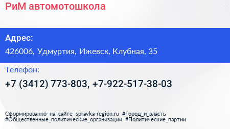РиМ, автомотошкола по адресу 426006, Удмуртия, Ижевск, Клубная, 35 в дальнейшем Организация, размещена в следующих категориях:
