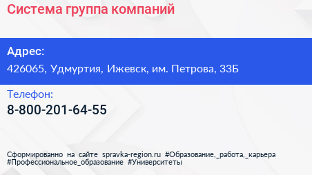 Система, группа компаний по адресу 426065, Удмуртия, Ижевск, им. Петрова, 33Б в дальнейшем Организация, размещена в следующих категориях: