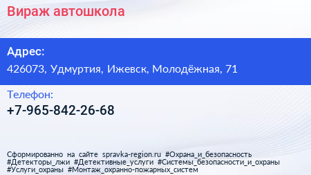 Вираж, автошкола по адресу 426073, Удмуртия, Ижевск, Молодёжная, 71 в дальнейшем Организация, размещена в следующих категориях: