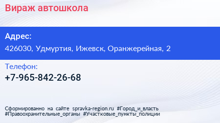 Вираж, автошкола по адресу 426030, Удмуртия, Ижевск, Оранжерейная, 2 в дальнейшем Организация, размещена в следующих категориях: