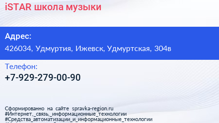 iSTAR, школа музыки по адресу 426034, Удмуртия, Ижевск, Удмуртская, 304в в дальнейшем Организация, размещена в следующих категориях: