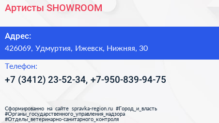 Артисты SHOWROOM по адресу 426069, Удмуртия, Ижевск, Нижняя, 30 в дальнейшем Организация, размещена в следующих категориях: