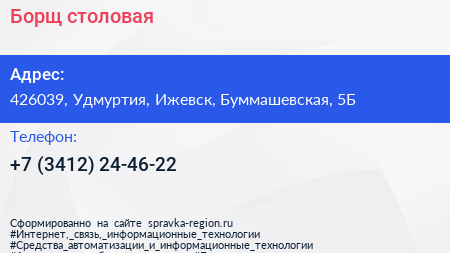 Борщ, столовая по адресу 426039, Удмуртия, Ижевск, Буммашевская, 5Б в дальнейшем Организация, размещена в следующих категориях: