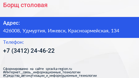 Борщ, столовая по адресу 426008, Удмуртия, Ижевск, Красноармейская, 134 в дальнейшем Организация, размещена в следующих категориях: