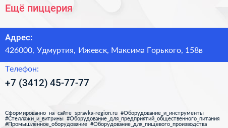 Ещё!, пиццерия по адресу 426000, Удмуртия, Ижевск, Максима Горького, 158в в дальнейшем Организация, размещена в следующих категориях: