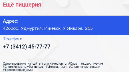 Ещё!, пиццерия по адресу 426060, Удмуртия, Ижевск, 9 Января, 215 в дальнейшем Организация, размещена в следующих категориях: