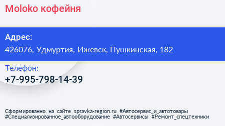 Moloko, кофейня по адресу 426076, Удмуртия, Ижевск, Пушкинская, 182 в дальнейшем Организация, размещена в следующих категориях: