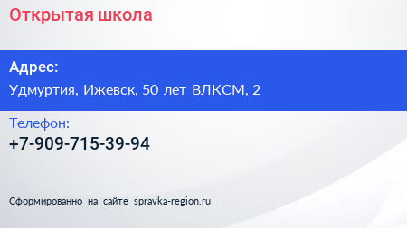 Открытая школа по адресу Удмуртия, Ижевск, 50 лет ВЛКСМ, 2 в дальнейшем Организация, размещена в следующих категориях: