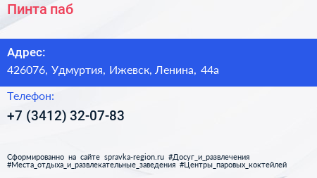 Пинта, паб по адресу 426076, Удмуртия, Ижевск, Ленина, 44а в дальнейшем Организация, размещена в следующих категориях: