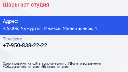 Шары, арт-студия по адресу 426008, Удмуртия, Ижевск, Милиционная, 4 в дальнейшем Организация, размещена в следующих категориях: