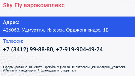 Sky Fly, аэрокомплекс по адресу 426063, Удмуртия, Ижевск, Орджоникидзе, 1Б в дальнейшем Организация, размещена в следующих категориях: