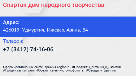 Спартак, дом народного творчества по адресу 426019, Удмуртия, Ижевск, Азина, 84 в дальнейшем Организация, размещена в следующих категориях: