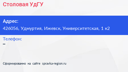 Столовая УдГУ по адресу 426056, Удмуртия, Ижевск, Университетская, 1 к2 в дальнейшем Организация, размещена в следующих категориях: