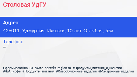 Столовая УдГУ по адресу 426011, Удмуртия, Ижевск, 10 лет Октября, 55а в дальнейшем Организация, размещена в следующих категориях: