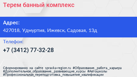 Терем, банный комплекс по адресу 427018, Удмуртия, Ижевск, Садовая, 13д в дальнейшем Организация, размещена в следующих категориях: