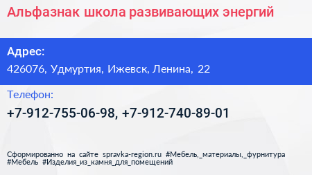 Альфазнак, школа развивающих энергий по адресу 426076, Удмуртия, Ижевск, Ленина, 22 в дальнейшем Организация, размещена в следующих категориях: