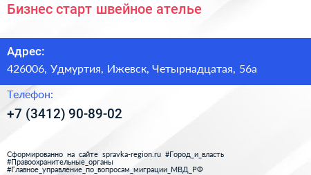 Бизнес-старт, швейное ателье по адресу 426006, Удмуртия, Ижевск, Четырнадцатая, 56а в дальнейшем Организация, размещена в следующих категориях: