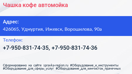 Чашка кофе, автомойка по адресу 426065, Удмуртия, Ижевск, Ворошилова, 90а в дальнейшем Организация, размещена в следующих категориях: