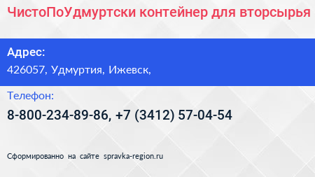 #ЧистоПоУдмуртски, контейнер для вторсырья по адресу 426057, Удмуртия, Ижевск, в дальнейшем Организация, размещена в следующих категориях: